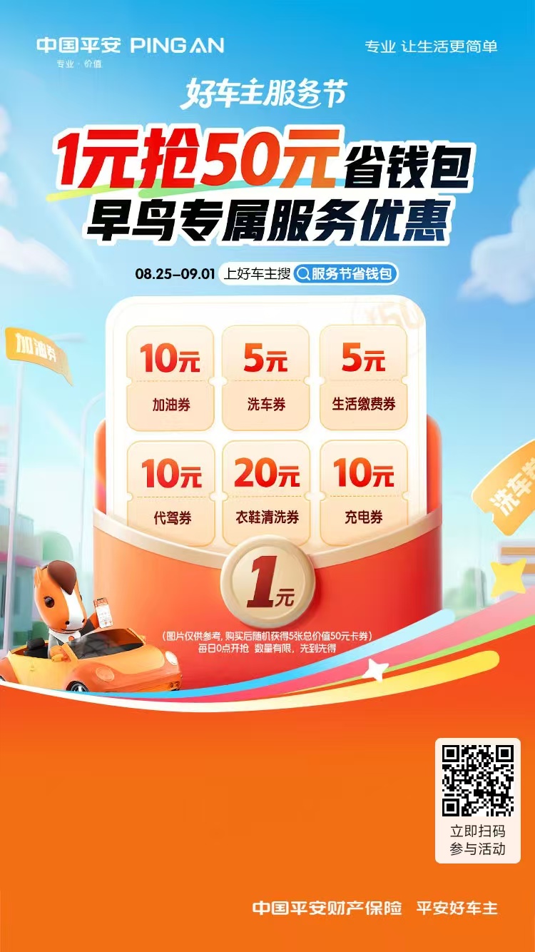 平安好车主 | 1元抢加油券/洗车券/生活缴费券等早鸟专属服务优惠