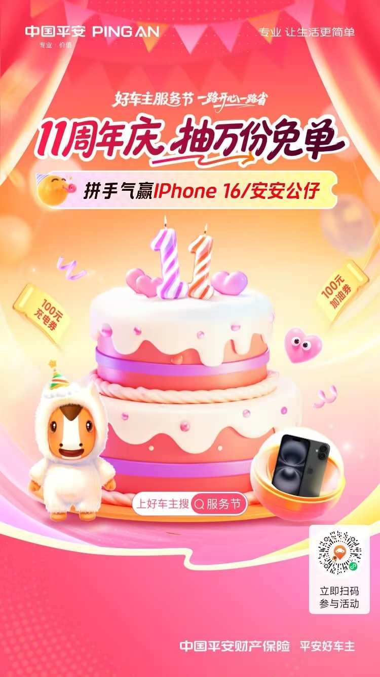 平安好车主 | 11周年庆抽万份免单,拼手气赢IPhone 16/安安公仔